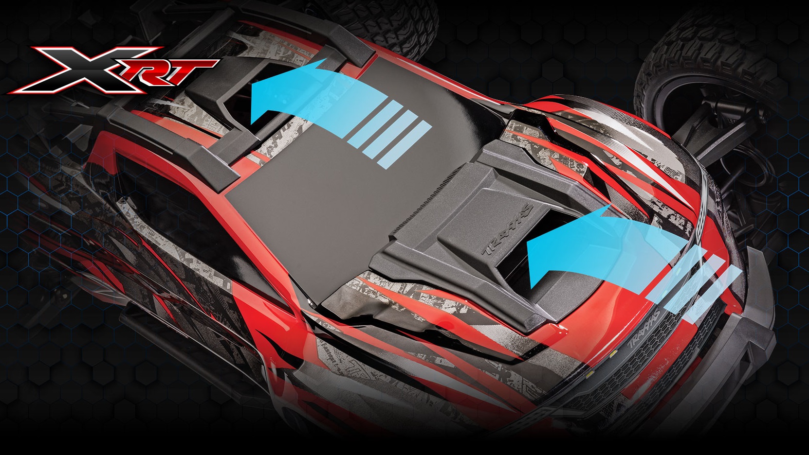 Инновационные воздухозаборники направляют воздух для охлаждения двигателя и системы ESC, чтобы повысить эффективность и время работы. Установленный на капоте воздухозаборник интегрирован с амортизаторной стойкой для подачи воздуха в регулятор скорости VXL-8s™. Вентиляционное отверстие на крыше направляет охлаждающий воздух непосредственно в радиатор двигателя.