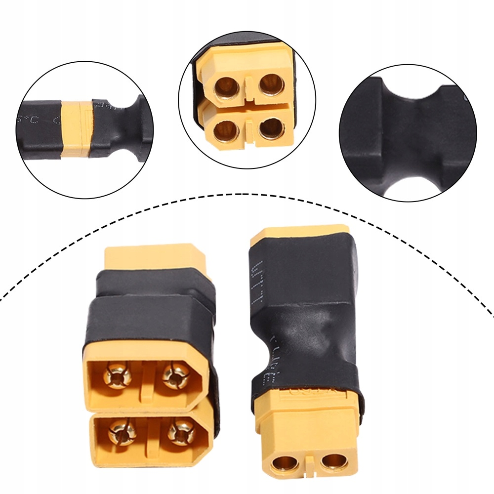 2 шт. Мужской адаптер XT60 Подключение (1x) для двойных женских розетков (2x) - позволяет разделить Один мужской источник питания для двух приемников с входами женский.