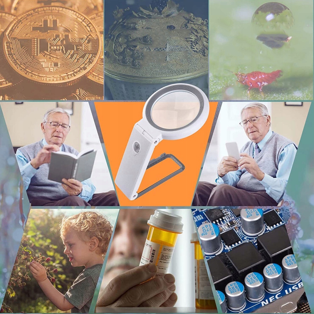 🔍🔎 Извлечение увеличения Это увеличительное стекло обеспечивает 30-кратное и 10-кратное увеличение, что позволяет пользователям визуально нарушать текст независимо от его размера .. Доступно в 3 цвета: теплый, теплый белый, белый. После установки аккумулятора Lupa обеспечивает яркое освещение для пожилых людей или визуально. На столе и освободите руку, чтобы читать более удобно
