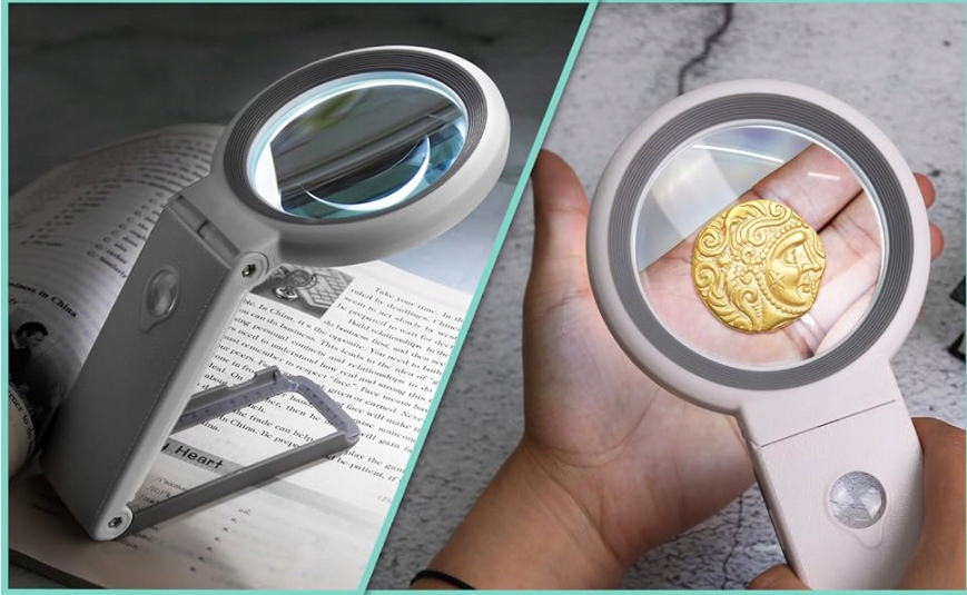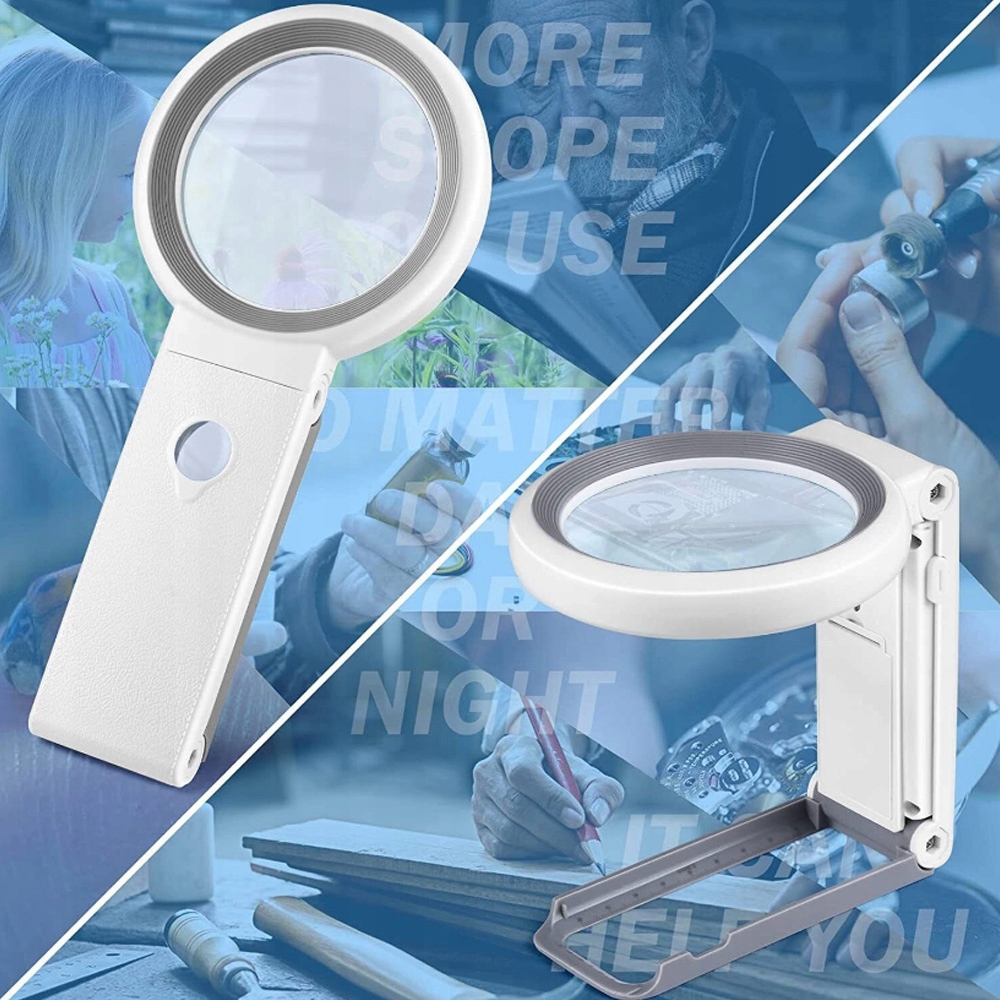 Расширение стекло с освещением, стойкой, увеличение 30x 10x, 18 светодиодов, складывание
