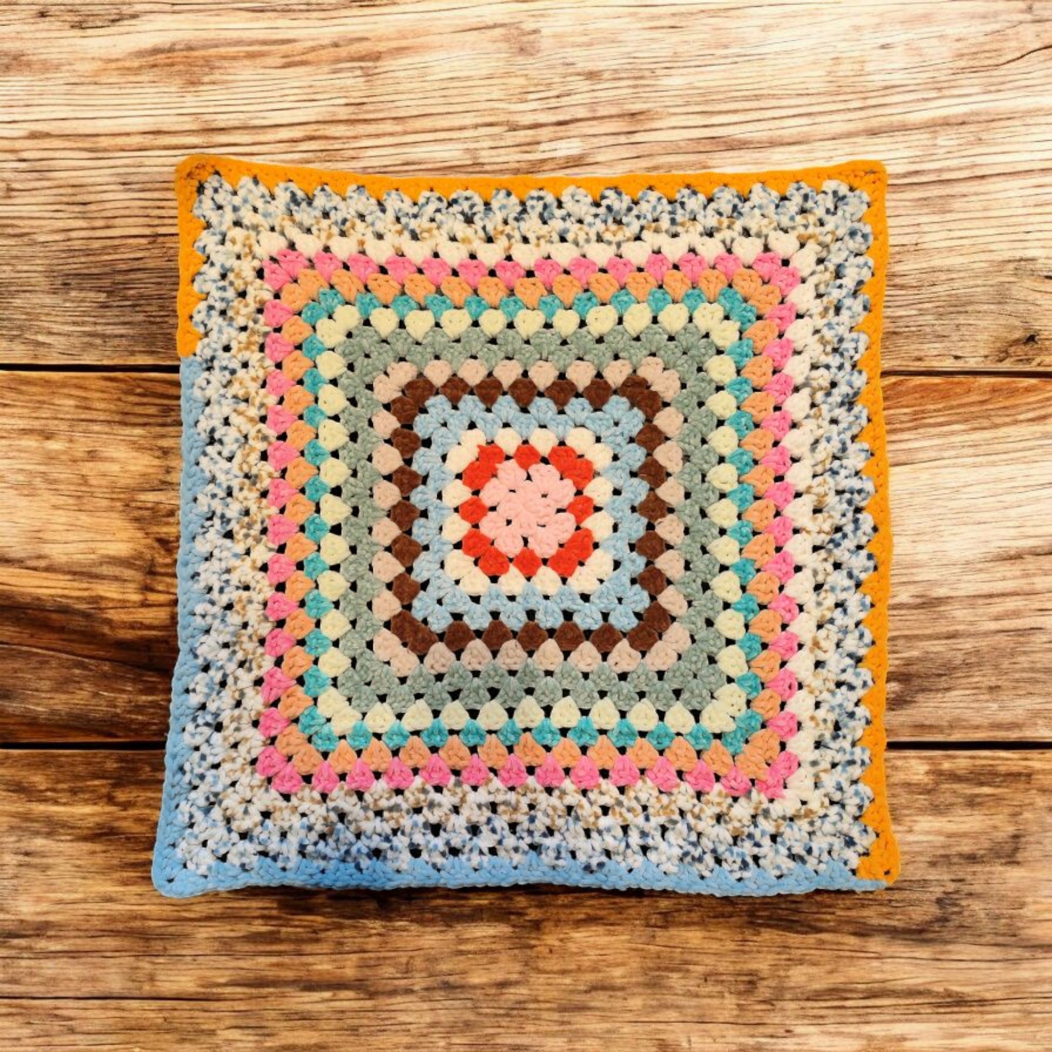 Ręcznie Dziergany, Kolorowy Kocyk z Pluszowej Włóczki - 70x70 cm