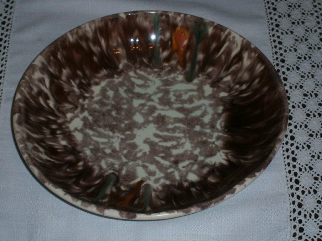 ручная работа, овальная, идеально неровная, глазурованная, центр менее блестящий, чем стенки, как бы потертый, по верхнему краю трещина - трещина ок. 1 см, видна с обеих сторон, в остальном без сколов и сколов. ущерб