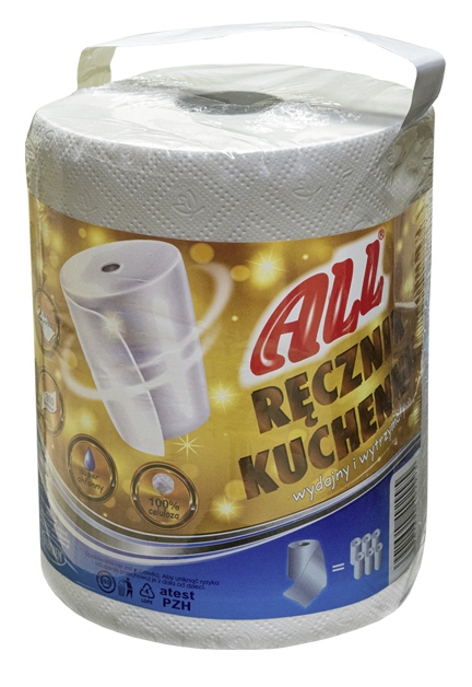 Полотенце ALL в одном рулоне - бумажное полотенце, предназначенное для чистки окон, зеркал и металлических поверхностей, не оставляющее разводов и частиц. на высушенной поверхности. Полотенце ALL очень прочное и прекрасно впитывает воду.
