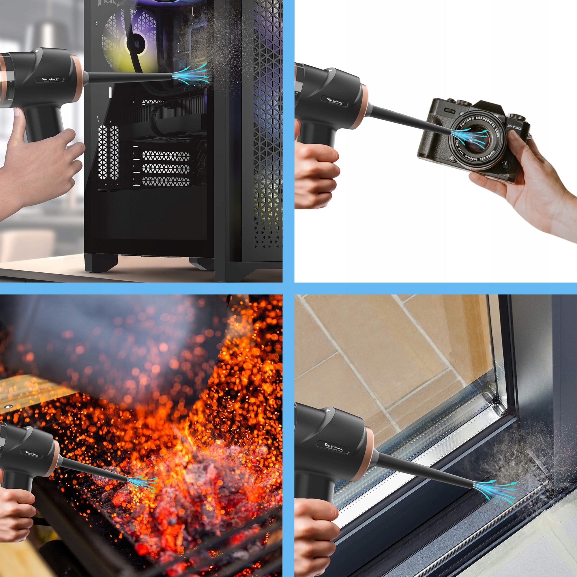 Идеально подходит для использования дома и в машине, он не только обеспечивает идеальную очистку, но также помогает поджечь гриль или очистить труднодоступные места. Благодаря этому многофункциональному устройству ежедневная уборка превратится в удовольствие!