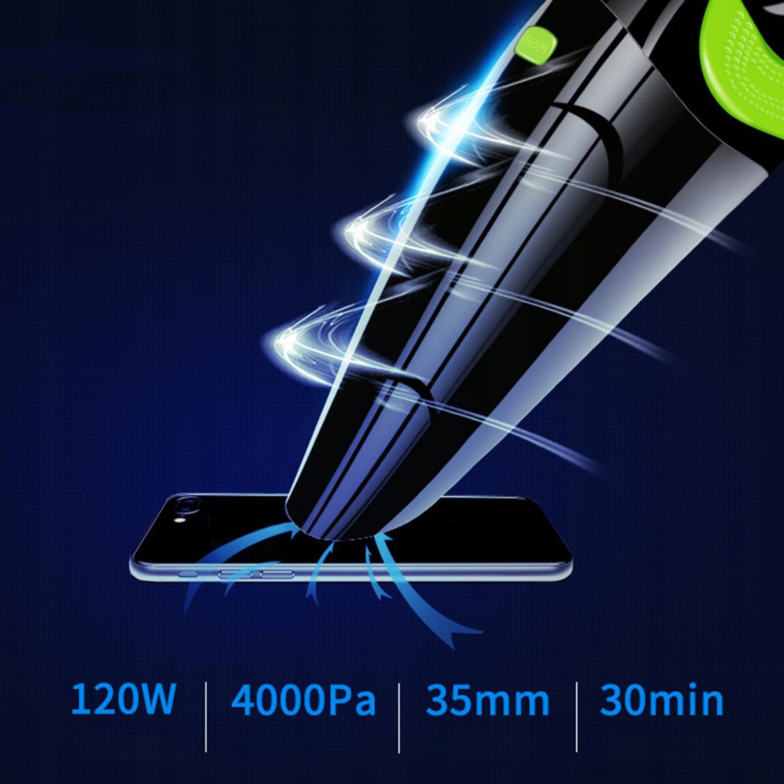 Ręczny odkurzacz samochodowy, bezprzewodowy, filtr 4000PA. Zastosowanie w samochodzie, jasnozielony