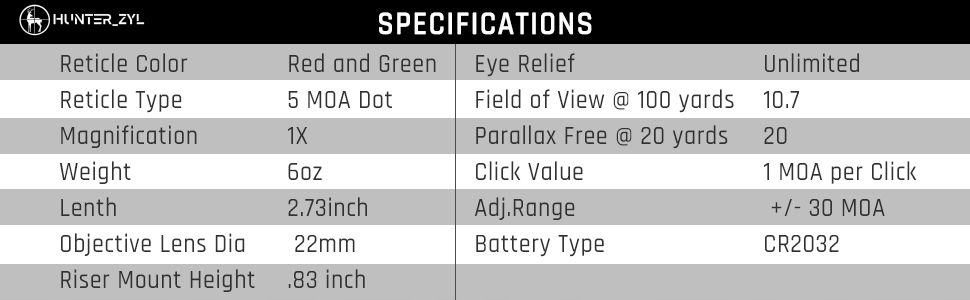 - Двойной цвет, чтобы выбрать: он легко переключается из зеленой точки на красную точку. Двойно -образованные красные или зеленые точки с 7 настройками яркости красных точек, чтобы адаптироваться к различным средам, идеально подходит для широкого спектра дневных и ночных применений.