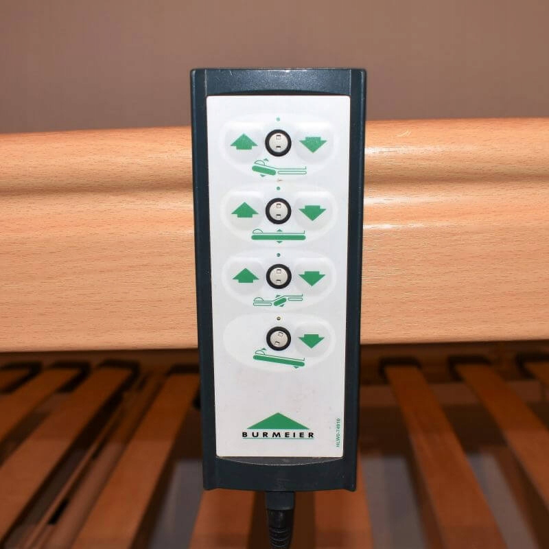 Кровати Burmeier Dali созданы реабилитационные процедуры для людей с проблемами опорно-двигательного аппарата, требующих особого ухода. Электрические приводы, регулируемые с помощью простого в использовании пульта дистанционного управления, обеспечивают многомерное позиционирование кровати. Благодаря этому функционалу значительно повышаются комфорт и безопасность как лежачего человека, так и лица, осуществляющего уход, и физиотерапевта. Дали подходят для использования в домашних условиях. Благодаря деревянным перилам и фасадам цвета бука они выглядят эстетично и прекрасно сочетаются с декором помещения, в котором расположены.
