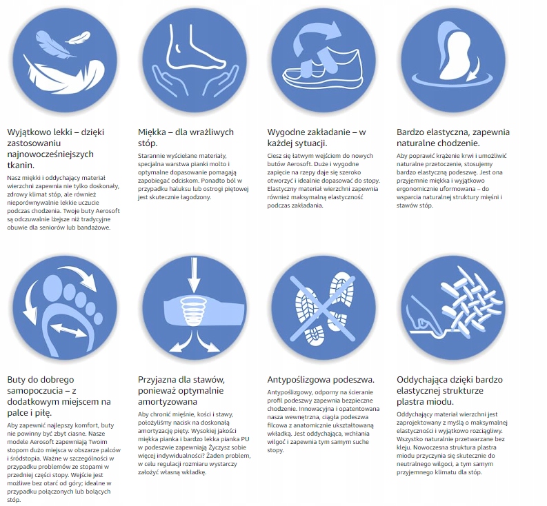 Здоровая обувь Aerosoft подходит всем: и молодым, и пожилым. Их используют каждый день, в помещении и на улице, как удобные домашние тапочки, в лечении, как реабилитационную обувь, а также для профилактики диабета. Модель особенно подойдет пожилым людям. Удобное надевание и широкая застежка-липучка – настоящее преимущество в повседневной жизни.