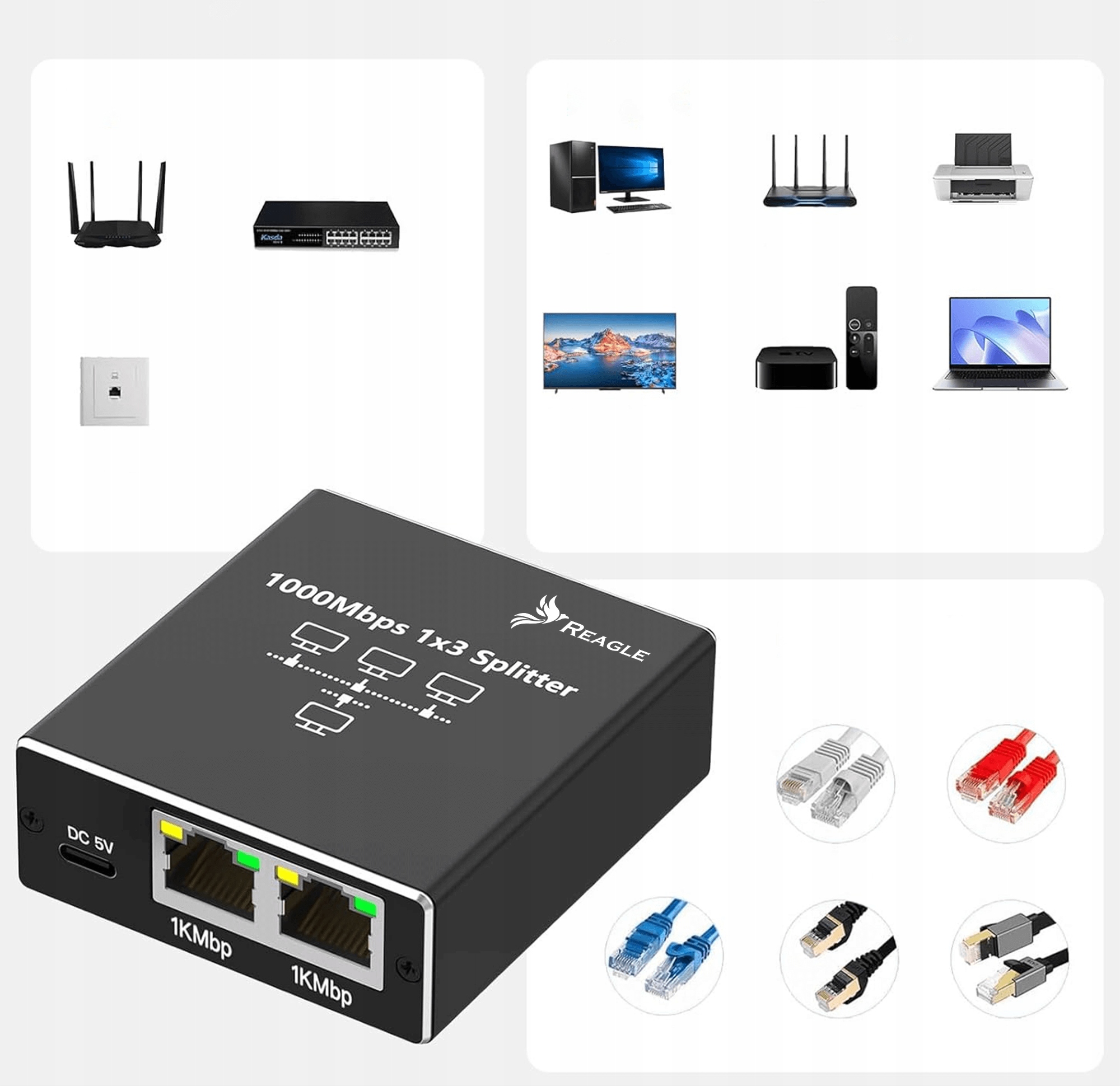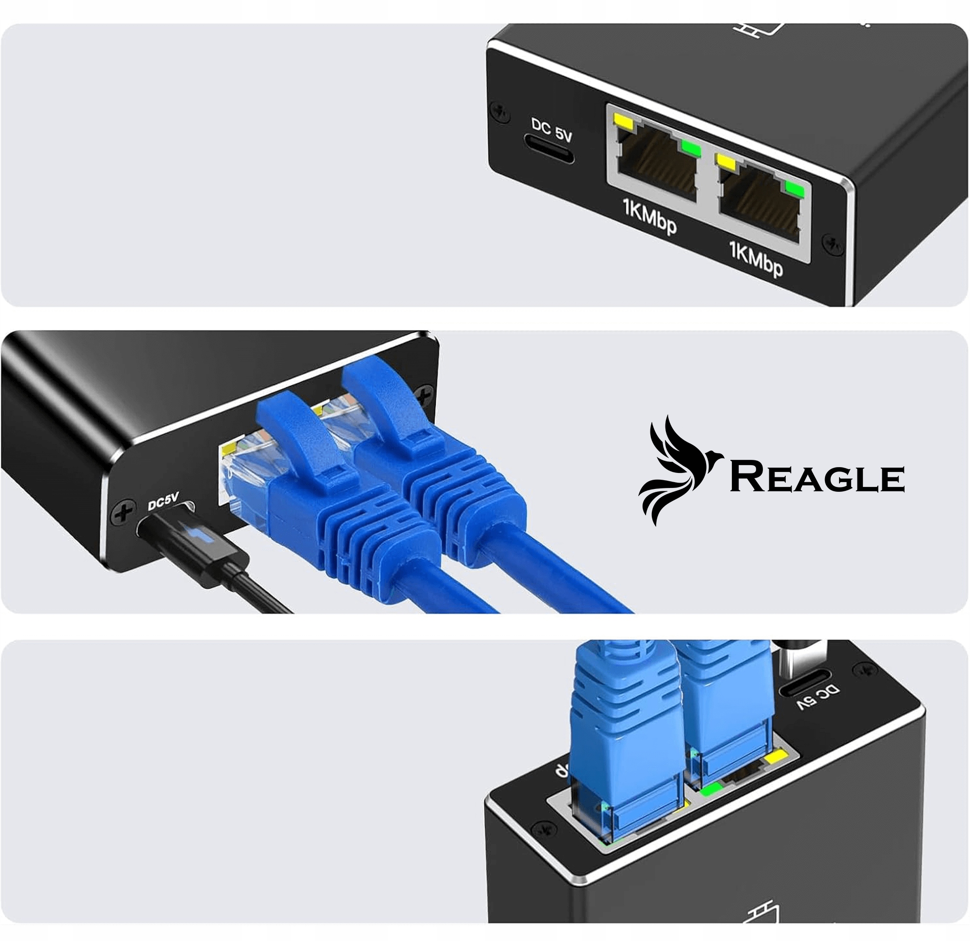 Адаптер-переключатель Reagle, разветвитель LAN Ethernet RJ45 3xRJ45 1000M