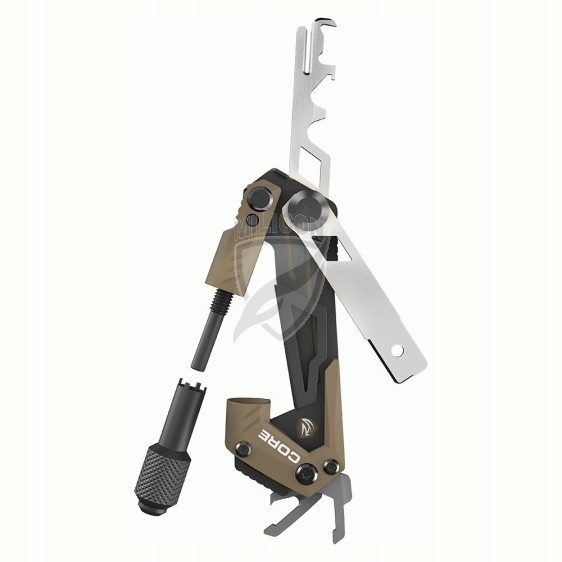 Благодаря конструкции, открытой и закрытой в качестве карабинера, закрытой с помощью блокировки блокировки лайнера, Gun Tool Core ™ может носить ремнем или прикрепленной с помощью системы MOLLE. Tool Core ™ имеет: