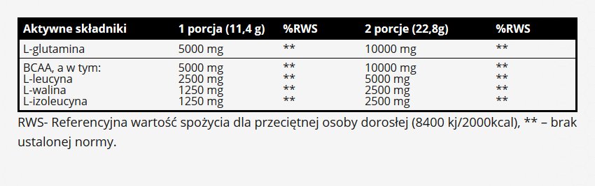 Уникальная и лидирующая на рынке формула аминокислот с разветвленной цепью и глютамина позволяет быстро и эффективно пополнить пул аминокислот, необходимых для правильного функционирования организма каждого спортсмена. Сочетание аминокислот с разветвленной цепью BCAA с глютамином позволяет получить максимальный эффект быстрой регенерации после тренировки, что обуславливает отличный рост мышц. И BCAA, и глютамин обеспечивают исключительно эффективное антикатаболическое действие и способствуют эффективному синтезу белка.