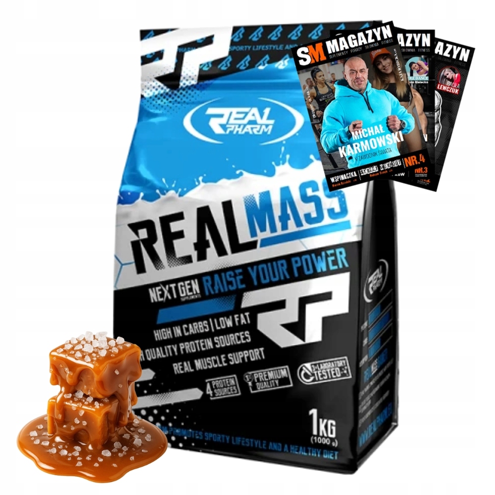 Real Mass от Real Pharm — биологически активная добавка с высоким содержанием углеводов и белков из различных источников. Благодаря этому решению ваши мышцы получают все необходимое для регенерации и роста в течение многих часов. Это чрезвычайно сильная анаболическая формула, которая заставит ваши мышцы быстро расти, а их сила превзойдет ваши самые смелые ожидания! Real Pharm Real Mass содержит мало сахара, что является несомненным преимуществом продукта. Кроме того, производитель также позаботился о хорошей растворимости, чтобы не отпугивать вас комочками и полосами в ваших кондиционерах. Кроме того, вкус наверняка порадует вас, даже если вы придирчивый человек!