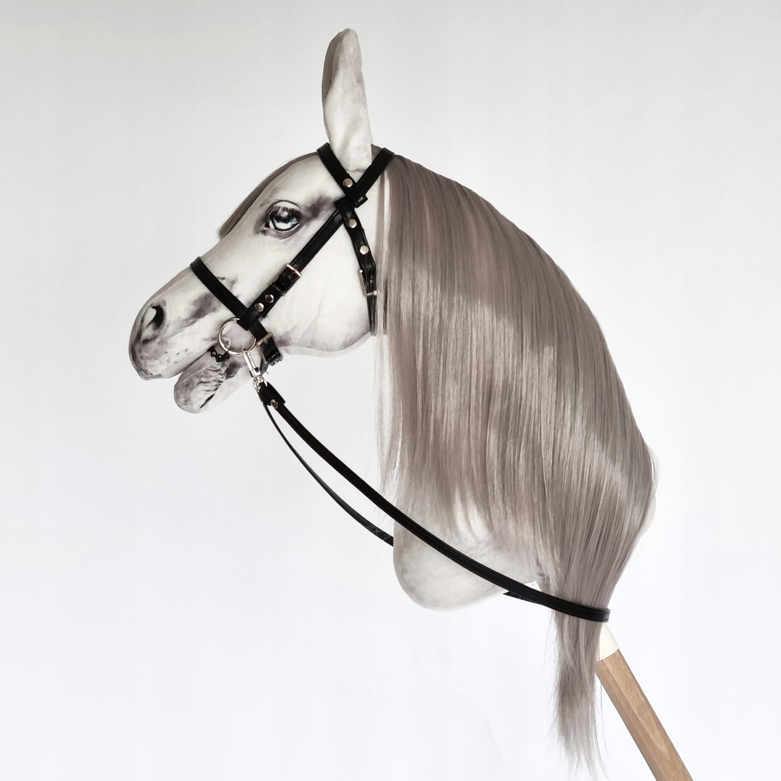 У лошади съемная уздечка из высококачественного черного ремня, имитирующего кожу. Вы можете обменять их на другие, имеющиеся в нашем магазине!