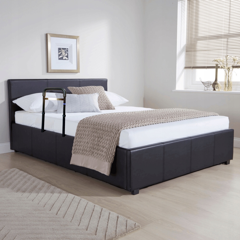 Установка поручня чрезвычайно проста и не требует каких-либо инструментов. Просто соедините элементы конструкции и прикрепите ее к каркасу кровати согласно прилагаемой инструкции.
