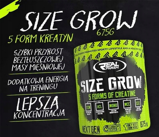 Real Pharm Size Grow h1>Проверьте и убедитесь сами, что мы подготовили для вас формулу усовершенствованных форм креатина, которая позволит вам быстро достичь намеченного тренировочного эффекта!