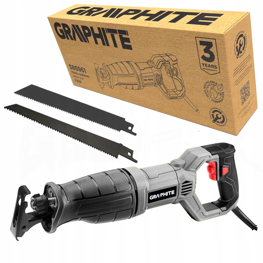 - ✅Сабельная пила 58G961 мощностью 710 Вт производства GRAPHITE предназначена для резки дерева, металла и пластика.