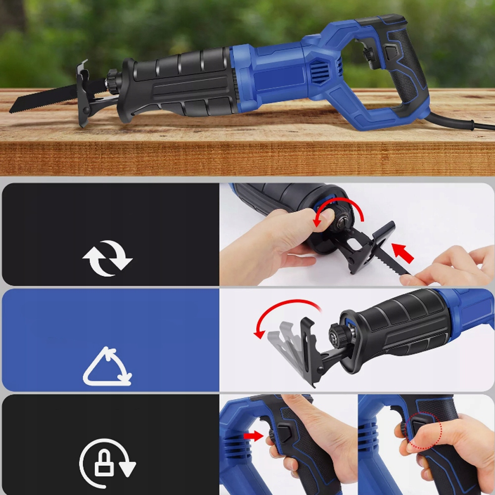 - Мощная сабельная пила оснащена переключателем безопасности и диапазона скоростей для предотвращения несчастных случаев, вызванных неосторожным прикосновением.
