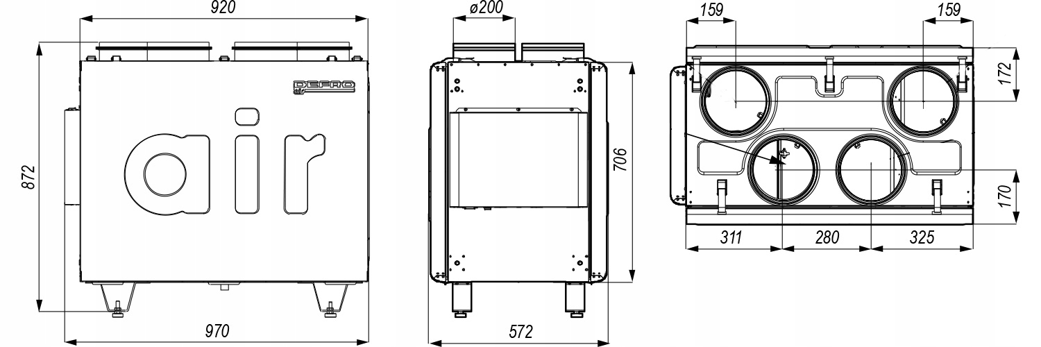 - 100% обход - только 100% байпаса Я даю гарантию свежего и прохладного воздуха летом. Конденсация водяного пара в рекуператоре, и потери тепла практически устранены. Благодаря этому нам более легкий доступ к управлению. Возможность вращения штаб -квартиры и универсальной сборки.
