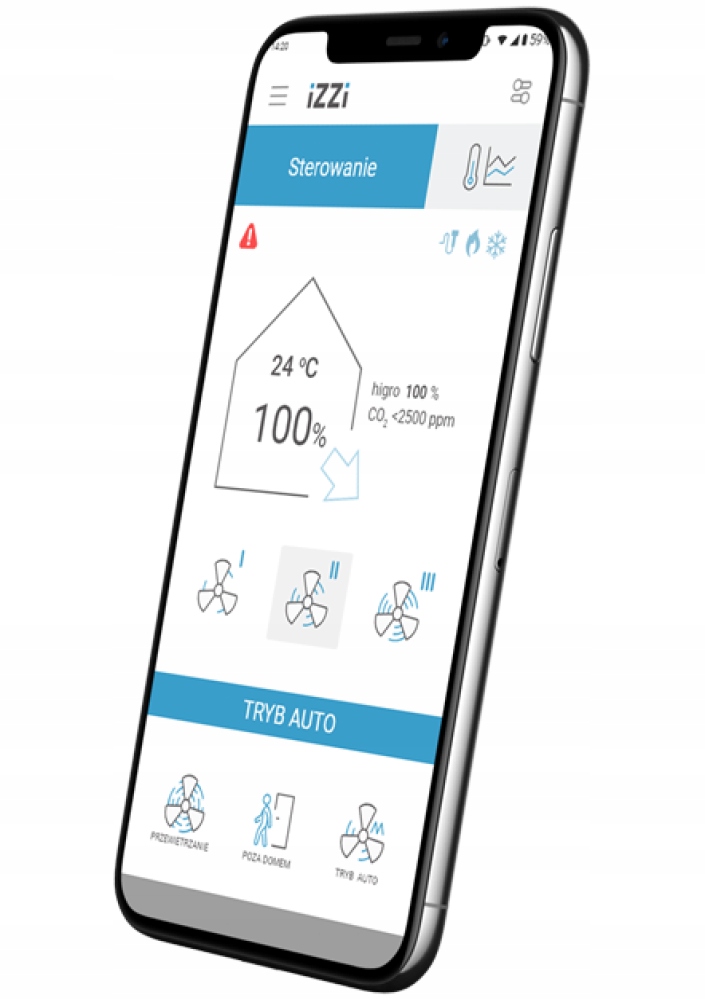 model izzi v.302 ERV Connect оснащена модулем Wi-Fi, который позволяет удаленно управлять всеми настройками устройства через современное и интуитивно понятное мобильное приложение Izzi Connect . Благодаря этому модулю вы можете управлять работой рекуператора локально через телефон или установить беспроводное соединение с домашней сетью, которое позволяет вам контролировать вентиляционную единицу из -за любой жизни.