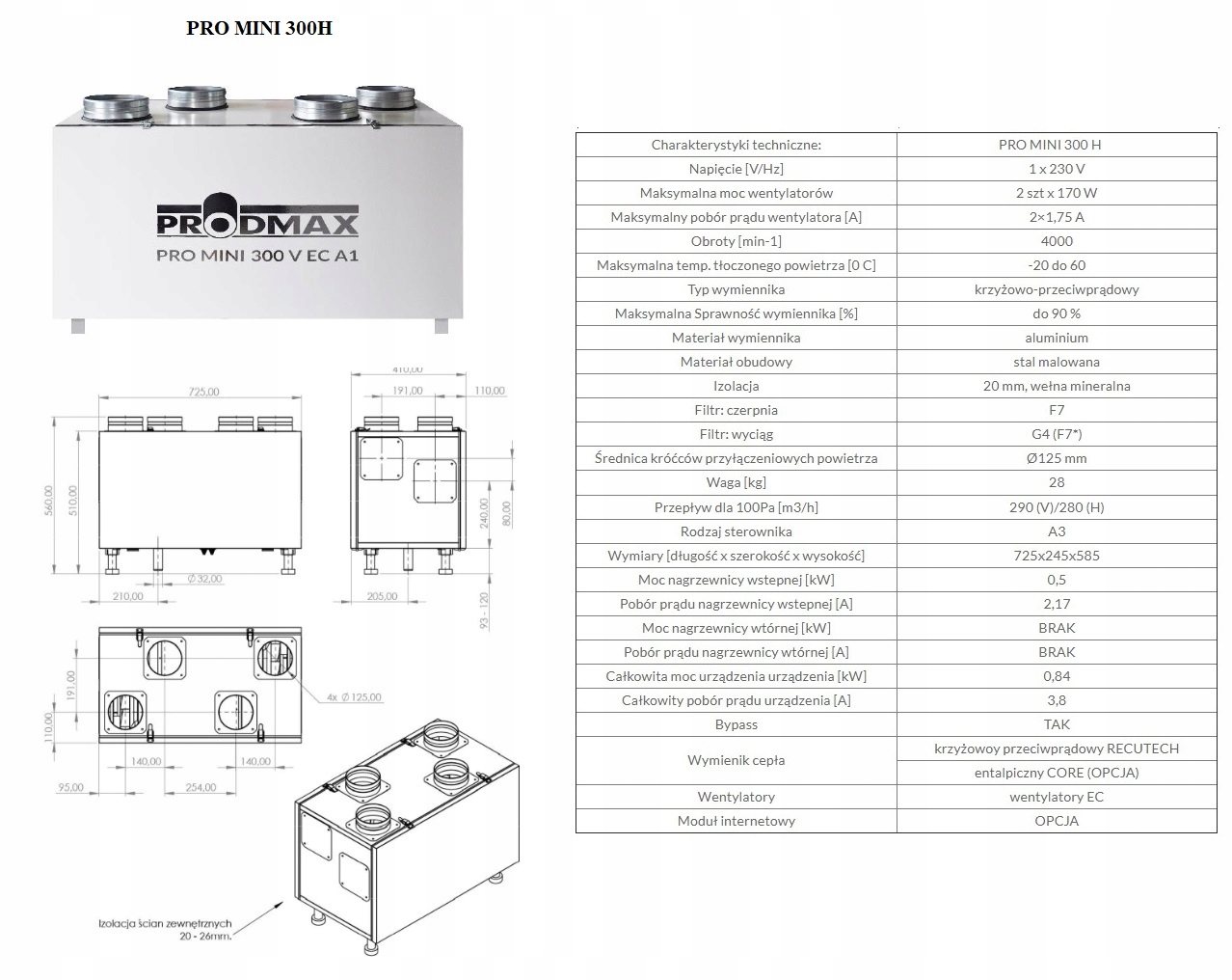 Recuperator pro mini 300h/ v c Reuperation штаб -квартиры h1>