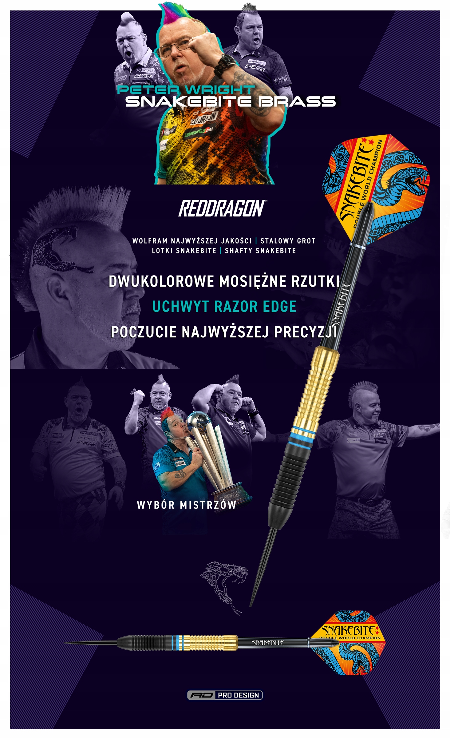 Профессиональный набор латунных дротиков с мягким наконечником RED DRAGON Peter Wright Snakebite 20 г