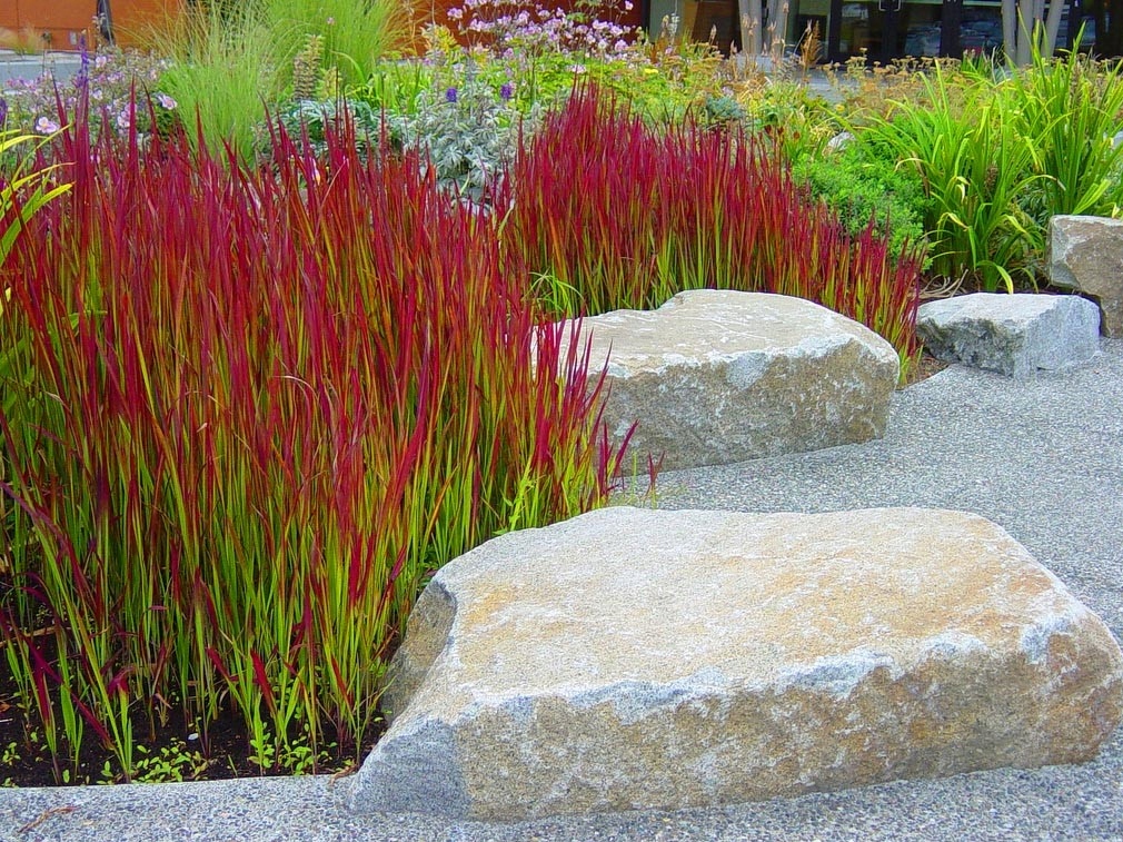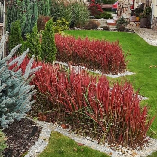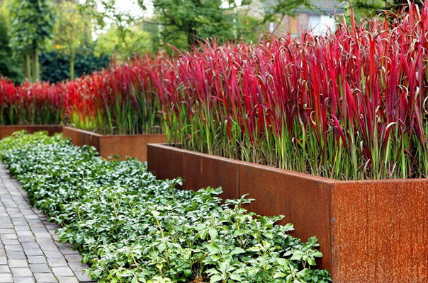 Императа 'Red Baron' прекрасно смотрится на клумбах, в контейнерах, на краю пруда и в натуралистических композициях в качестве цветового и формового акцента.