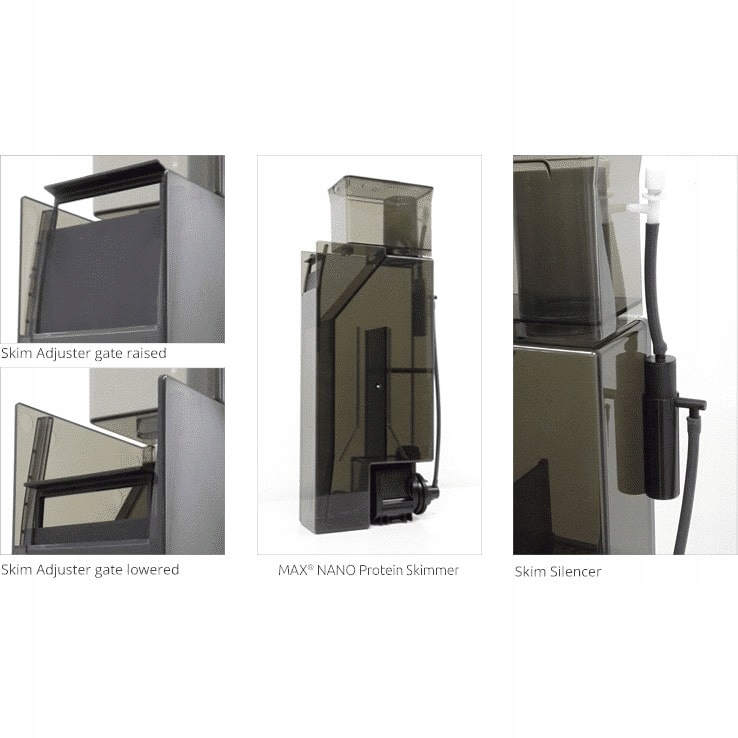 Важнейшим элементом панели является протеиновый скиммер Max Nano с идеально подобранным расходом воды при оптимальном соотношении воды и воздуха 3:1. Он имеет регулировку выхода воды, поэтому вы можете точно настроить его работу. Усовершенствования, разработанные инженерами Red Sea, позволяют скиммеру работать исключительно тихо и без вибраций. Количество тепла, выделяемого устройством, также ограничено.