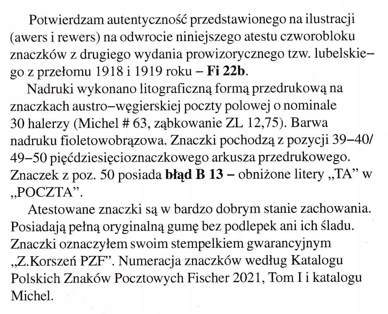 ред. Lubelskie Fi 22 b ** помилка B13 сертифікат Korsień