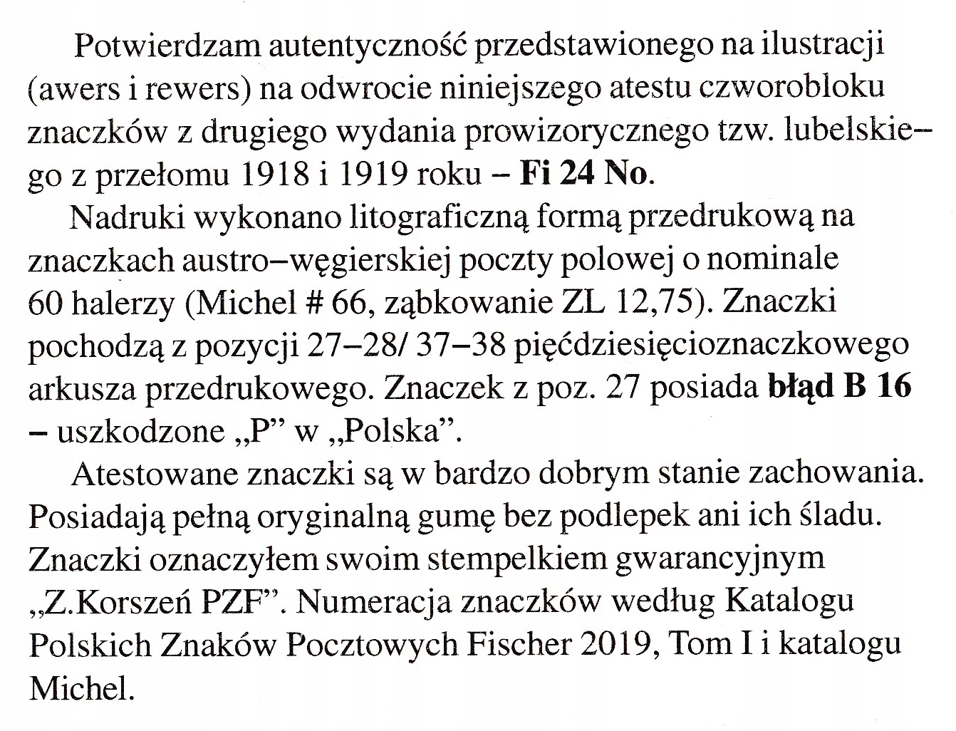 ред. Lubelskie Fi 24 No ** error B16 сертифікат Korsień