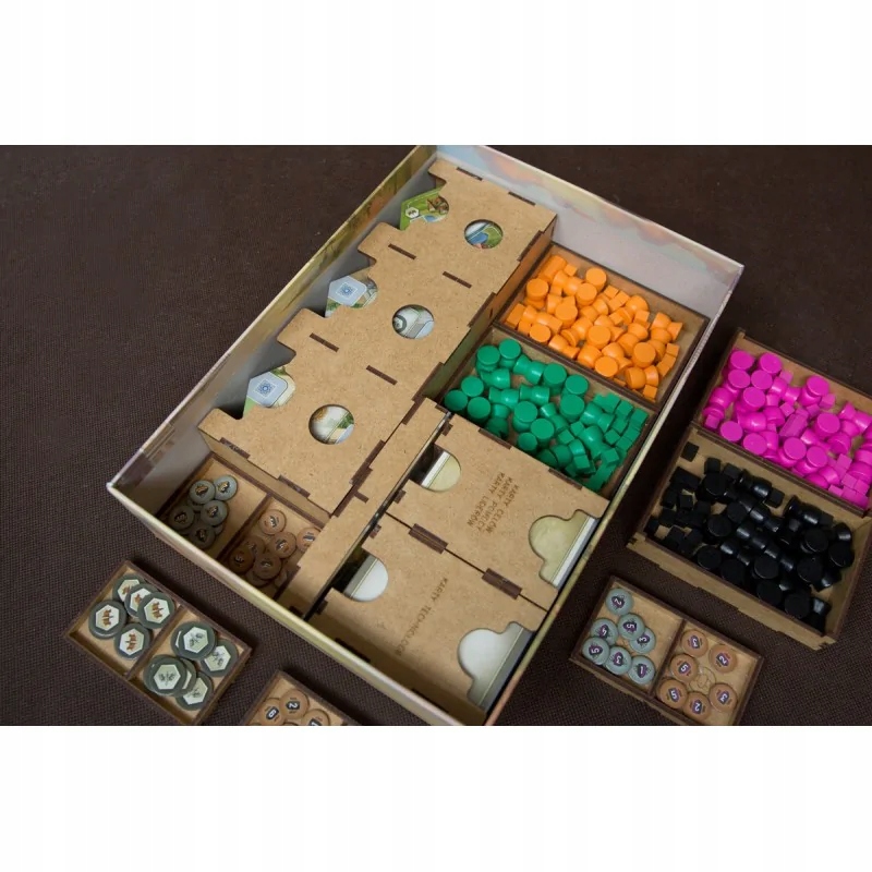 Вкладыш содержит контейнеры, которые вы поместите на стол после открытия коробки: для жетонов монет и контейнеры игроков для маркеров поселенцев и солдат.