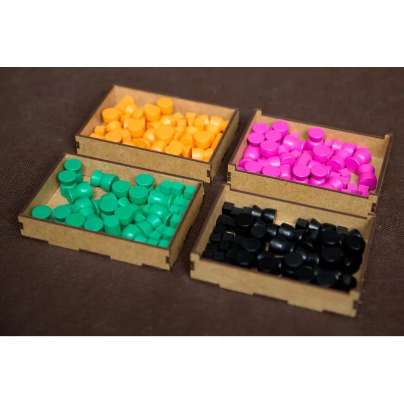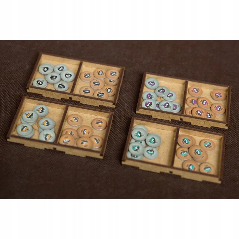 - Контейнеры для жетонов и маркеров помогают поддерживать порядок на столе.