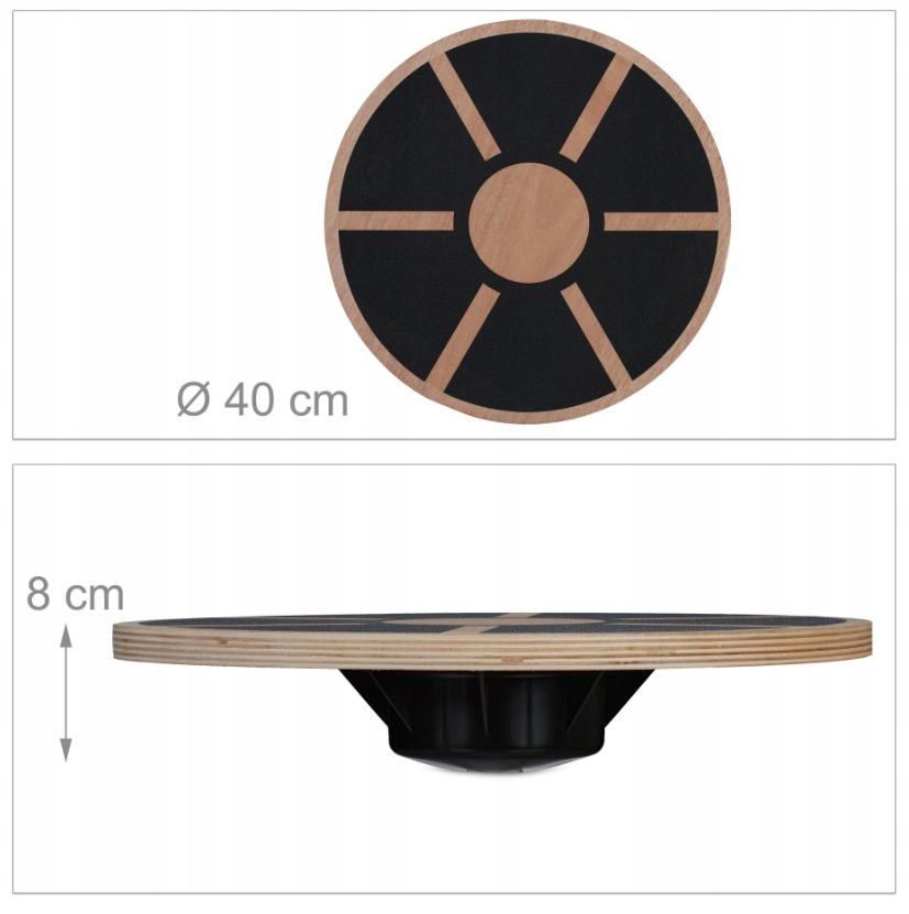 Wobble Board -это забавное фитнес -устройство для начинающих и профессионалов. Благодаря полукругающему дну ваши мышцы должны компенсировать непрерывное отсутствие баланса, что делает тренировки сверху усиливает все тело. Основные упражнения - баланс и скручивание - быстро пробуждают радость спорта и добавляют динамику в классическую программу обучения. Тренер баланса состоит из дерева и имеет грубую, не сжимающую гору, так что вы можете безопасно стоять на доске.