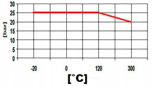 ✅Промежуточные значения допустимых давлений для работы при температурах от 120°C и 300°C получены посредством линейной интерполяции.