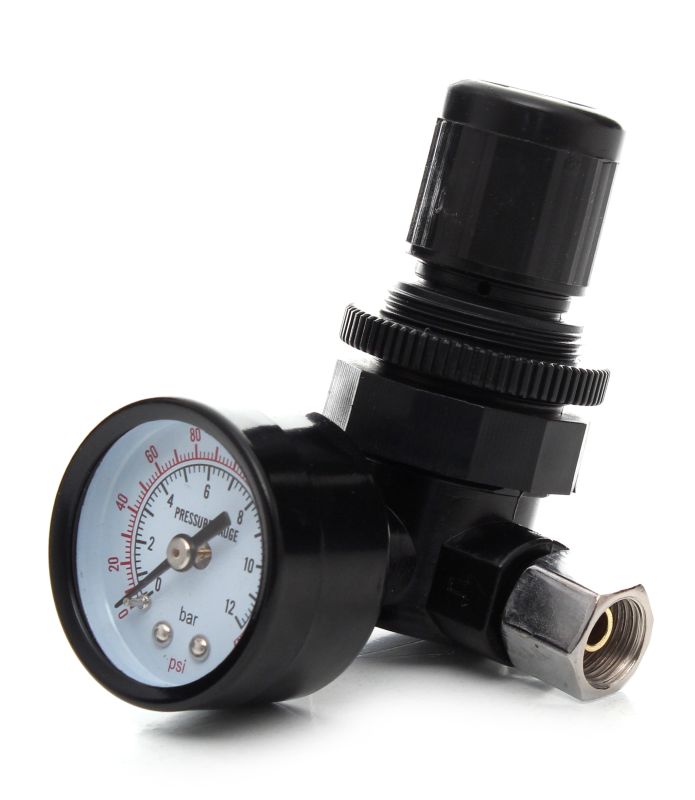 <ул>Регулятор давления для малярного пистолета с соединением 1/4". Изготовлен из качественных материалов, оснащен манометром.