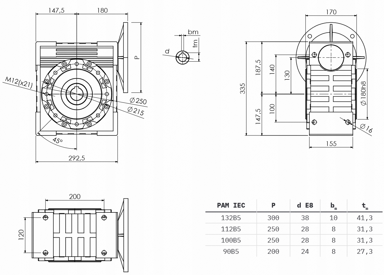 Червячный редуктор Двигатель PM130 PM 130 i=10 1/10 90 B5