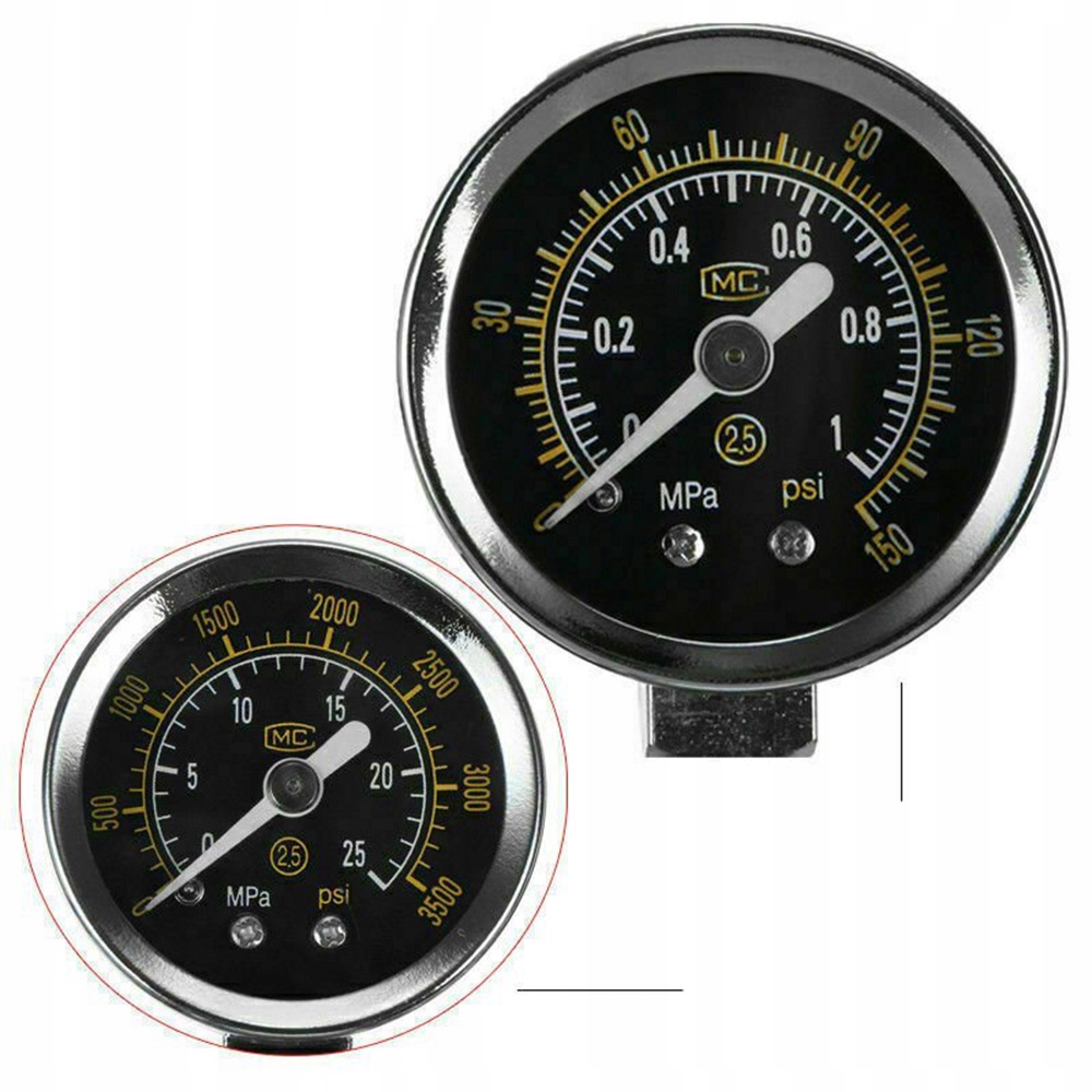 Двойные манометры показывают давление в цилиндре и давление на выходе.