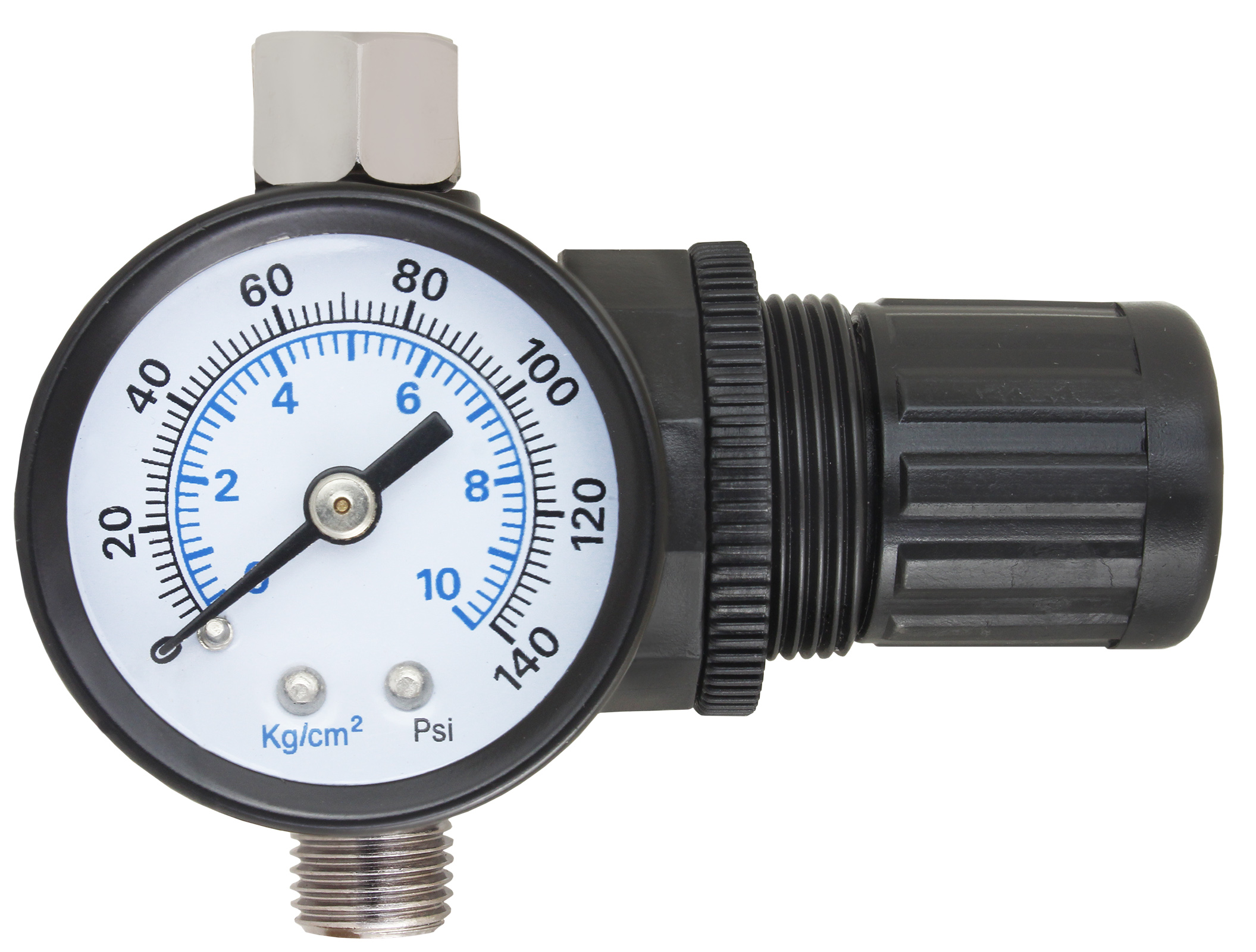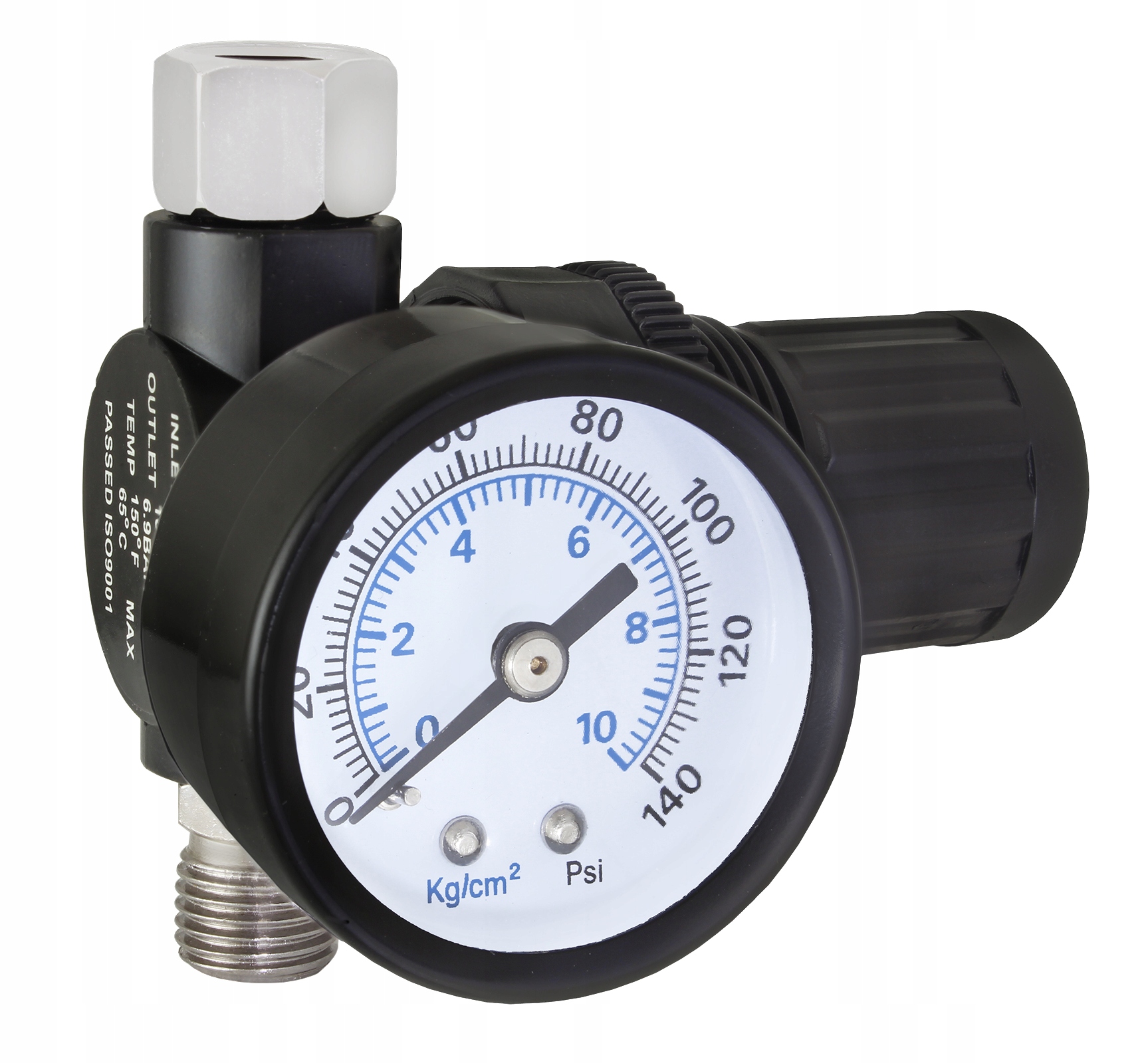 Профессиональный редуктор с манометром для покрасочных пистолетов и пневматических инструментов. Функция редуктора — поддерживать постоянное давление на выходе, в отличие от регуляторов, которые лишь гасят поток. Регулировка производится с помощью ручки, устанавливающей мембрану на заданное давление независимо от давления на входе (оно должно быть больше давления на выходе).Редуктор, используемый для изменения давления сжатого воздуха в малярных пистолетах, воздуходувках и др., где необходима точная настройка давления. Благодаря очень небольшому размеру редуктор не будет сковывать движения и станет хорошим выбором даже для мини-краскораспылителей.