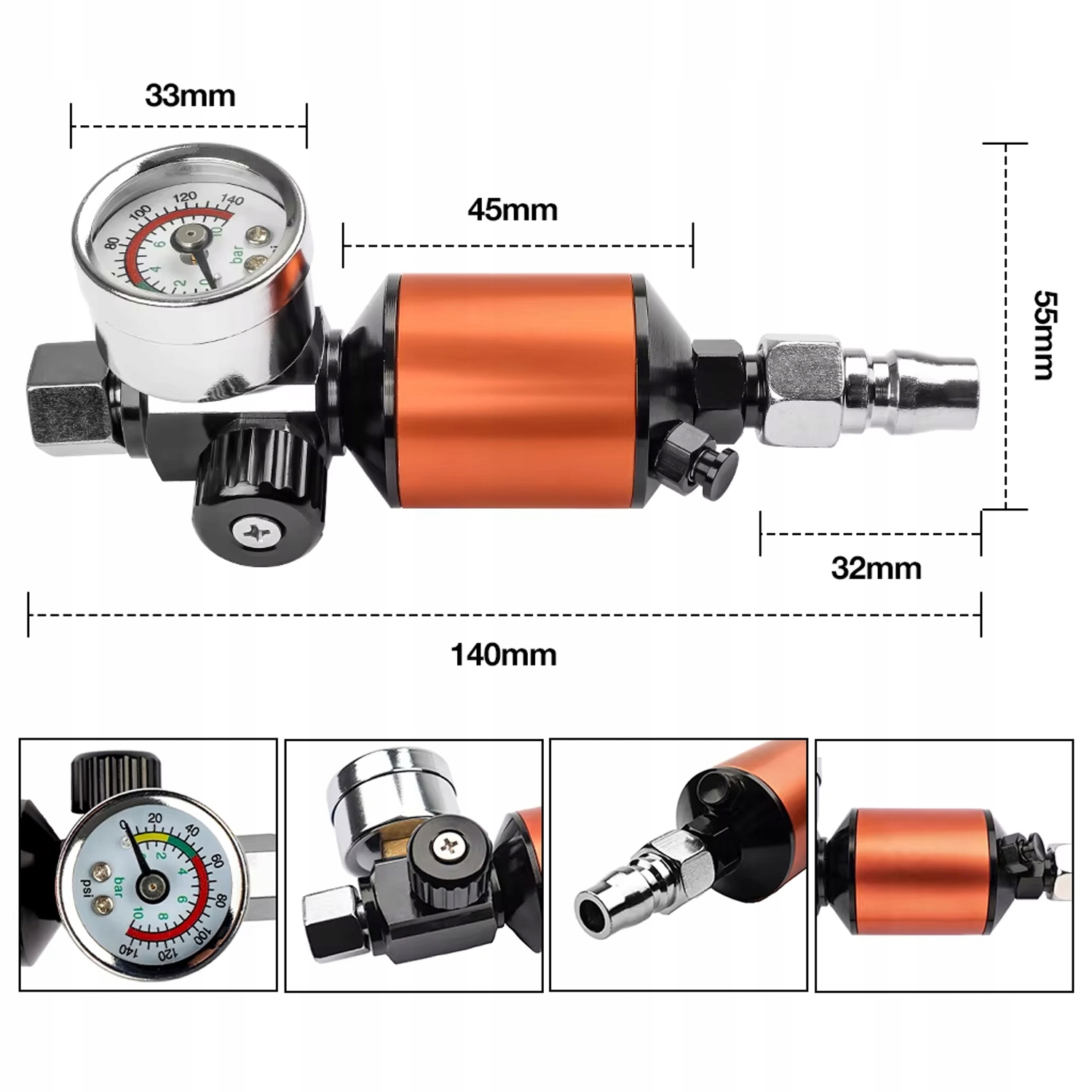 - диапазон давления давления Gamometr: 0-10 стержня/0-140 фунтов на квадратный дюйм