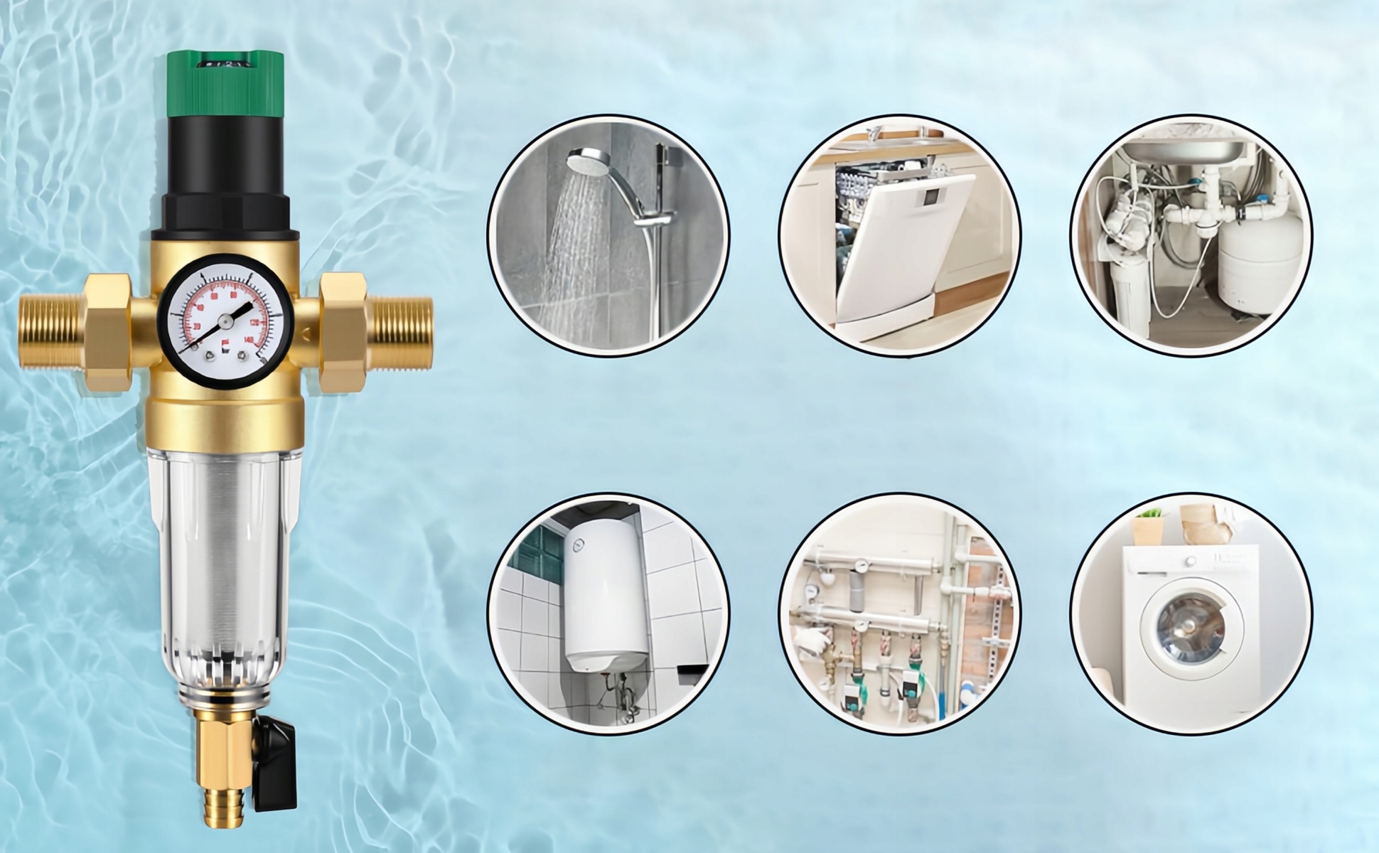 Фильтр предварительной очистки, стандартно устанавливаемый за водомером, удаляет механические примеси, такие как песок, ржавчина, ил, осажденные соединения железа, плавающие органические соединения, улучшая качество воды и продлевая срок службы бытовой техники и водопроводных систем.