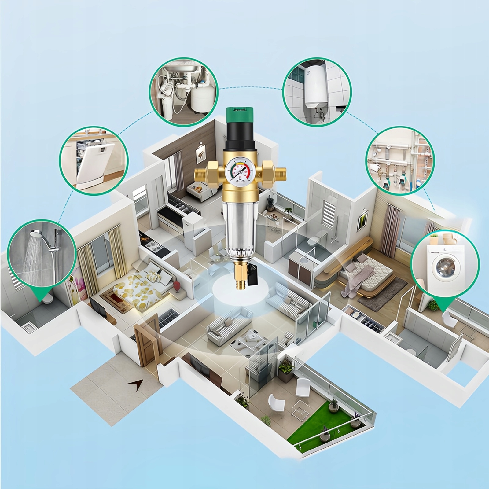 ⭐Фильтр предварительной очистки стандартно устанавливается за водомером, удаляет механические примеси, такие как песок, ржавчина, ил, осажденные соединения железа, плавающие органические соединения, улучшая качество воды и продлевая срок службы бытовой техники и водопроводных систем.