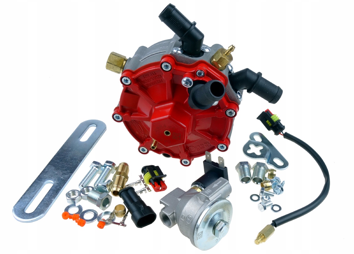 Редуктор предназначен для последовательного впрыска газа в легковых автомобилях в двигателях мощностью до 250 л.с. Устройство обеспечивает стабильное давление подачи в рампы впрыска при резких изменениях нагрузки двигателя и правильное испарение газов при низких температурах. Редуктор термически стабилен и обеспечивает необходимую температуру газа как в условиях городского, так и загородного движения.