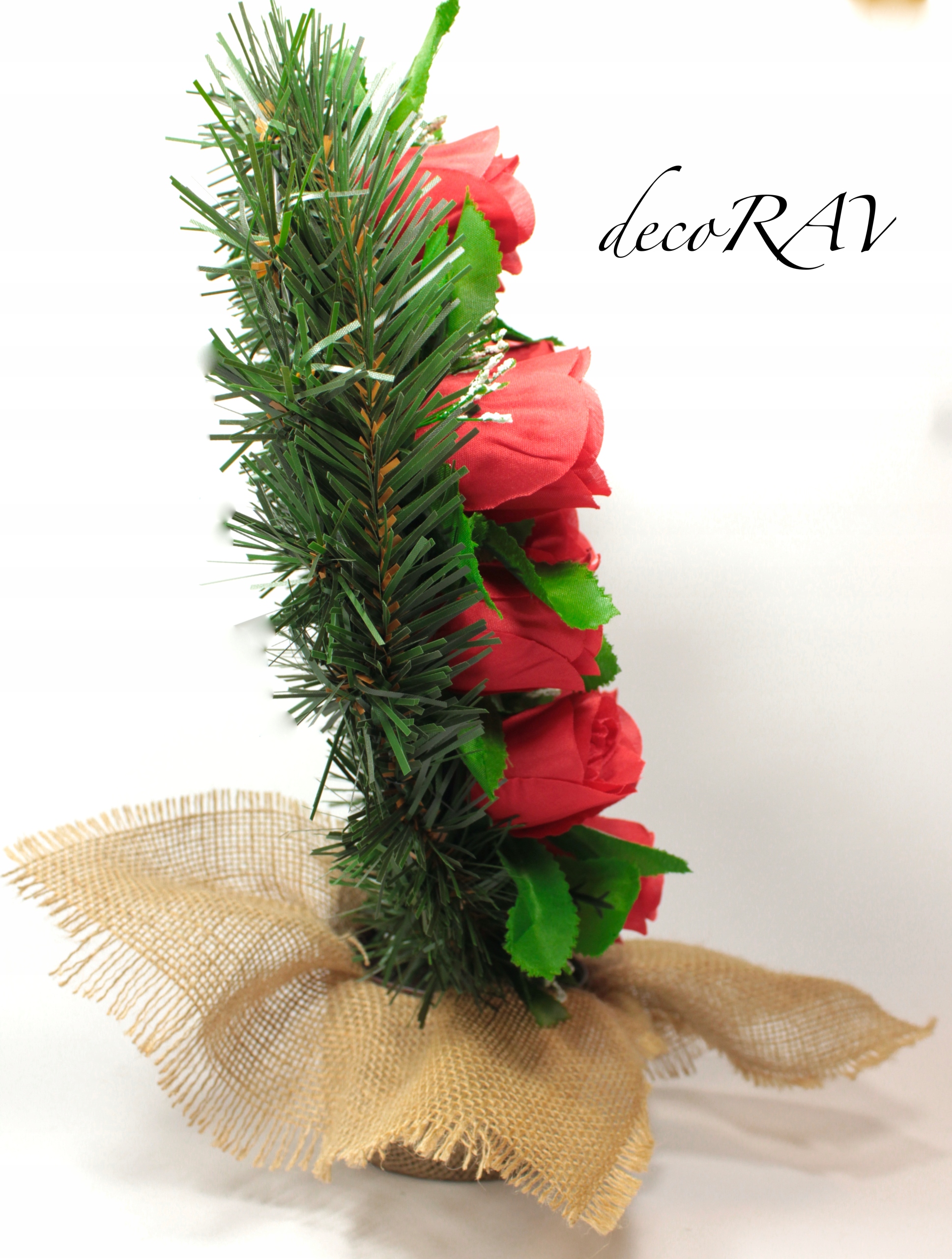 Украшение на металлическом каркасе, наполненное елочной змеей из фольги, украшенное 24 красными розами .
