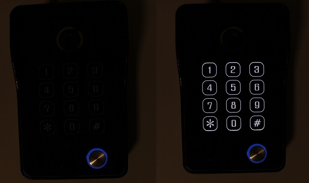 Кнопка звонка горит постоянно. Цифровая клавиатура подсвечивается при прикосновении.
