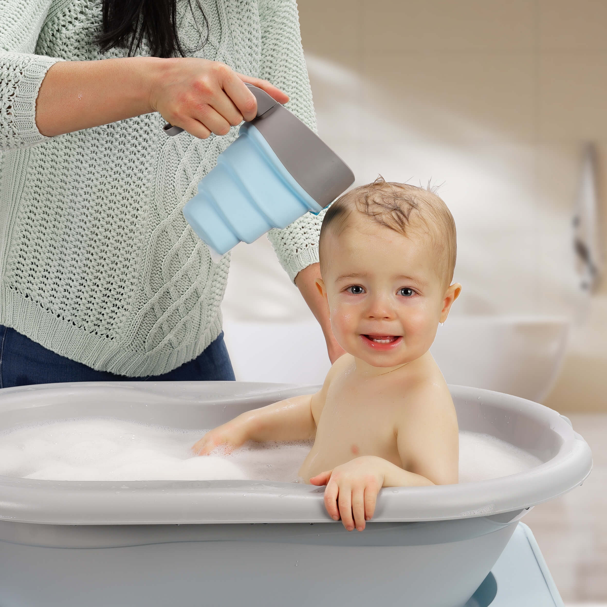 Если вода попадет ребенку в глаза во время мытья головы, ребенок почувствует себя очень некомфортно. Он может даже начать громко плакать и с этого момента постоянно отказываться мыть голову. Поэтому стоит использовать специальную чашку – ее форма помогает прикрыть чувствительные глаза ребенка, и в то же время позволяет эффективно смыть пену шампуня.