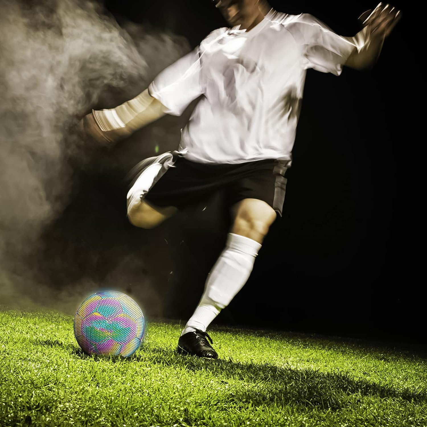 Светящийся светоотражающий футбольный мяч может быстро привлечь внимание и заставить вас вы будете выглядеть круто и уверенно. Это стандартный футбольный мяч, позволяющий свободно демонстрировать свои футбольные навыки на футбольном поле.