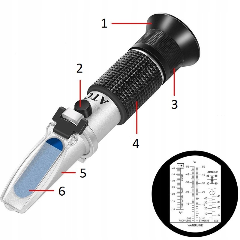 ⭐ широкий диапазон и точное качество измерений - Рефрактометр имеет очень разборчивые диаграммы, разделенные на зоны, касающиеся тестируемой жидкости в настоящее время.
