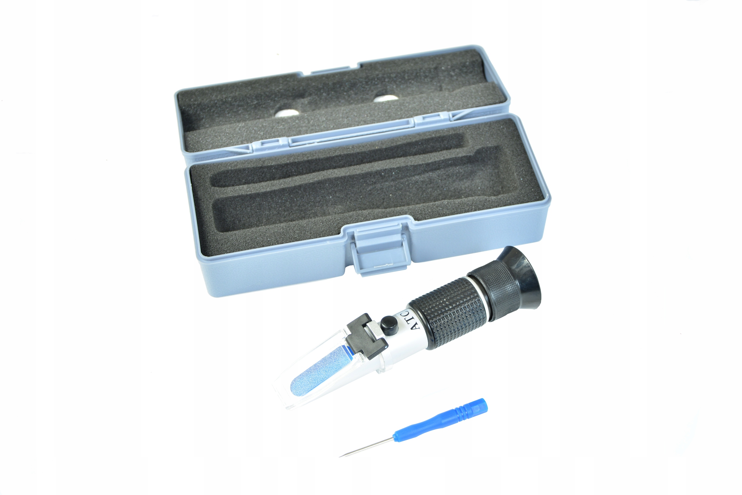 Перед первым использованием рефрактометр необходимо откалибровать (указанная температура окружающей среды для калибровки составляет 20°C, также убедитесь, что прибор достиг температуры окружающей среды):