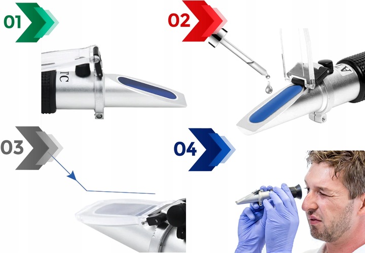 - направьте рефрактометр на источник света и посмотрите в видоискатель. ,