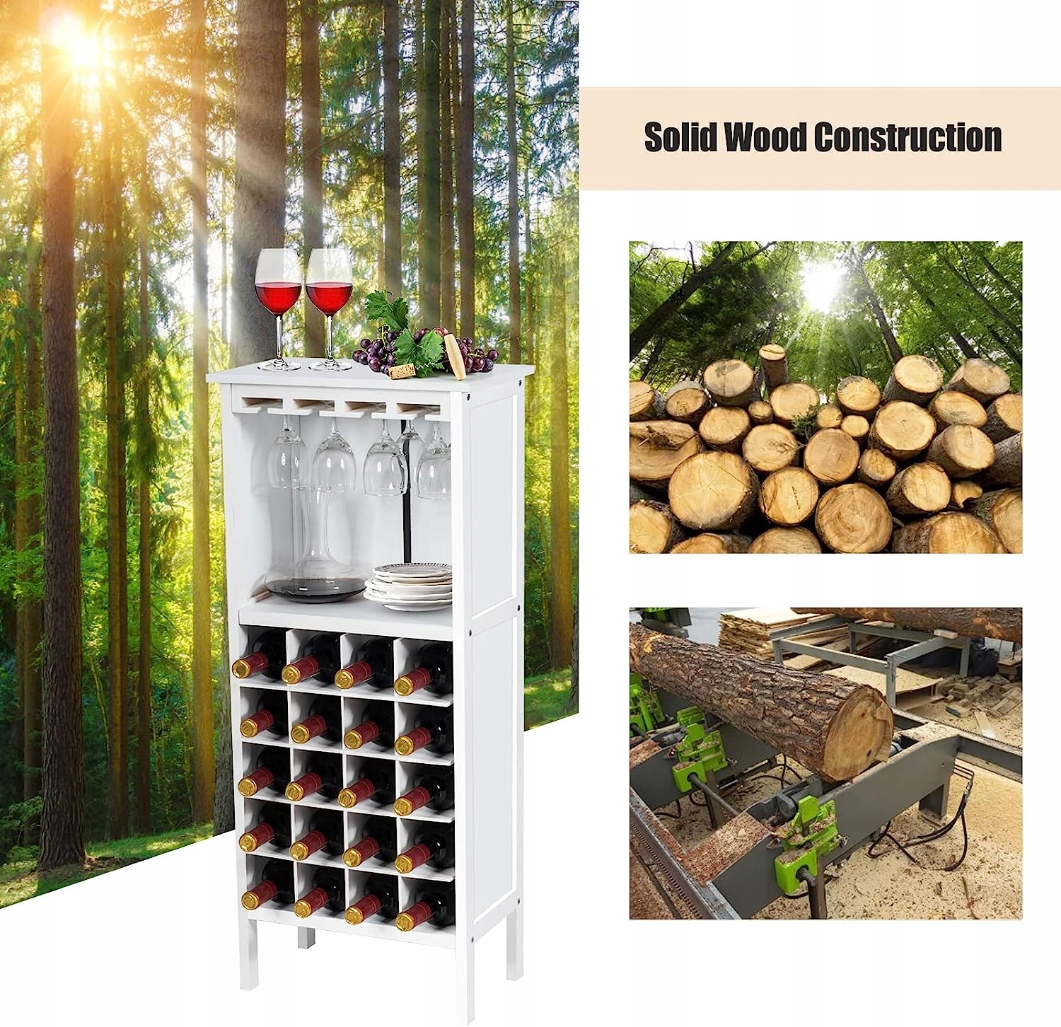 Высококачественная и прочная сосновая плита МДФ: Наша винная полка изготовлена из плиты МДФ и имеет лакированную поверхность, устойчивую к влаге и плесени, что делает стойку долговечной и прочной. качественные сосновые ножки делают винный шкаф устойчивым и выносливым.