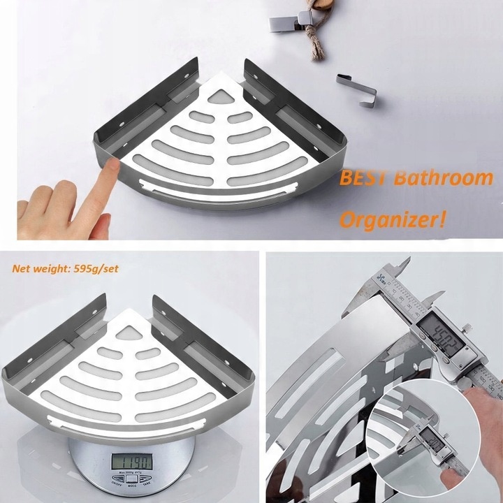 Гибкая подвесная полка для душа – Размеры: 29 см x 22 см x 4,5 см. Каждую полку можно использовать индивидуально или в комбинации. Треугольный дизайн позволяет лучше использовать угловую зону. Его можно использовать в любом уголке дома, он очень подходит для органайзеров в ванной и кухне.